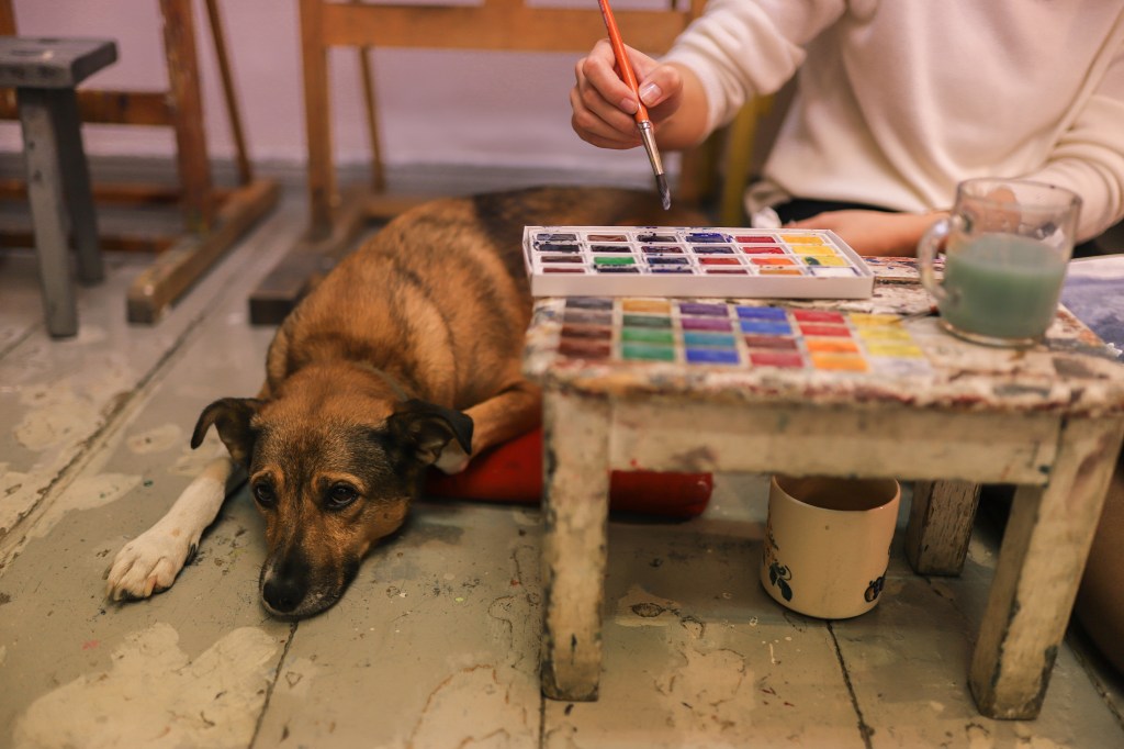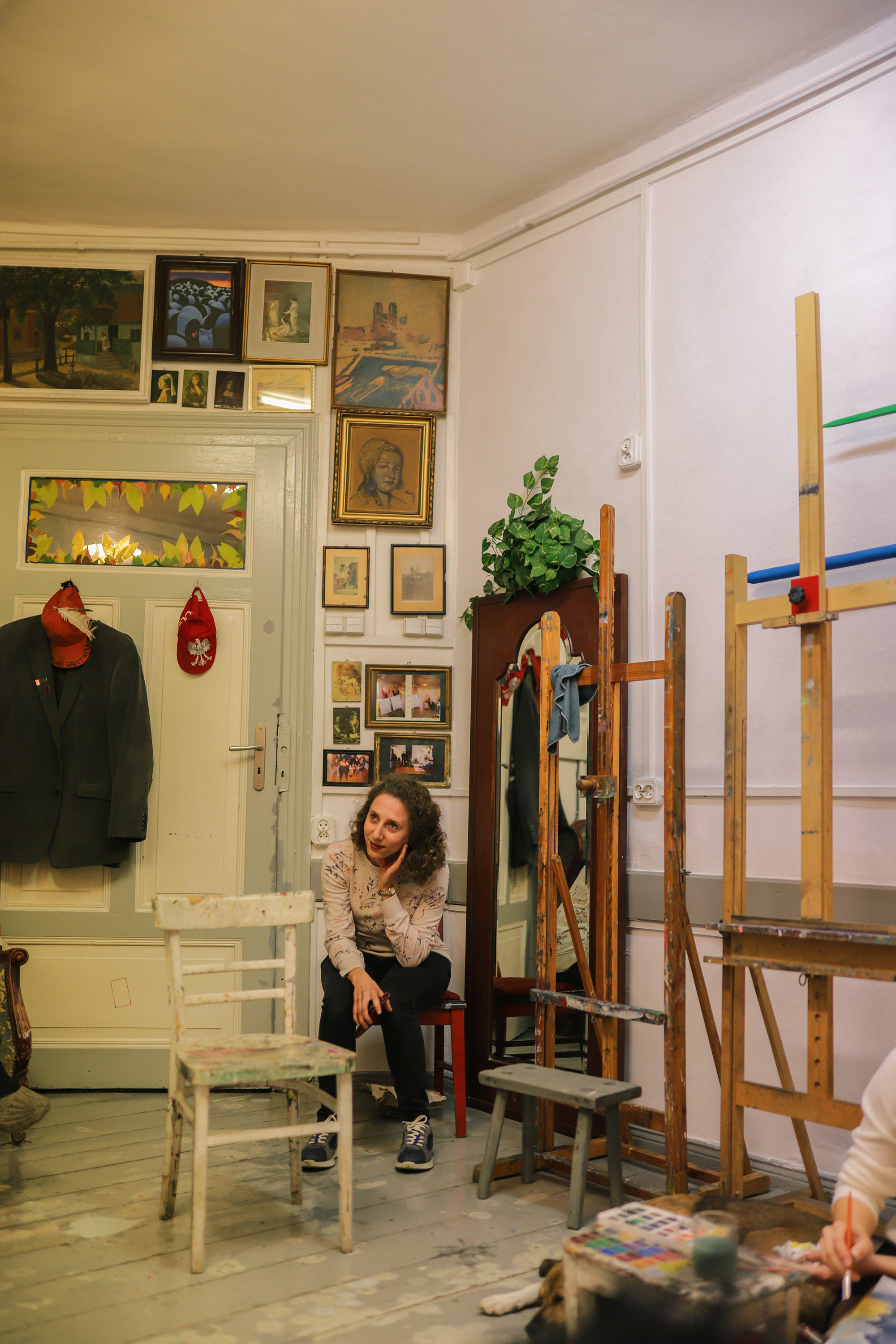 El señor Bednarz, ya después de años de funcionamiento del estudio, empezó a recolectar documentación. Ha estado filmando in situ la vida del estudio y sus protagonistas durante muchos años. Sólo puedo imaginar lo genial que será el material. En el estudio hay pequeños monitores en los que se puede echar un vistazo al material de video de los últimos años. A veces me veo a mí misma pintando aquella naturaleza muerta con servilletas. ¡Eso fue en el 2014!.