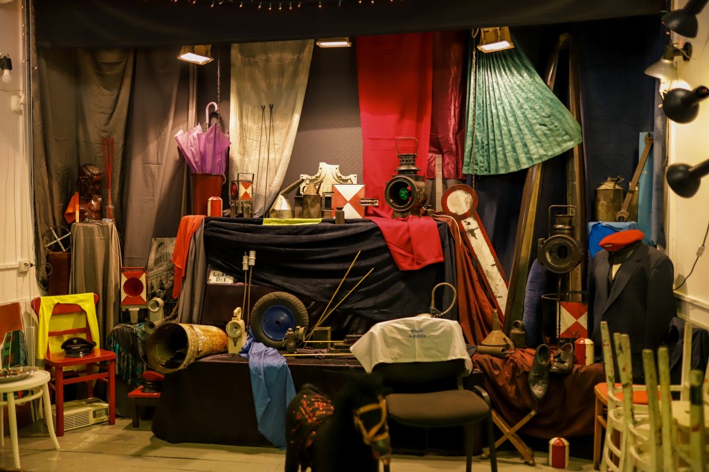 Las habitaciones tienen otro papel, los participantes de las clases se paran al lado de caballetes, a menudo con delantales manchados con pintura. Jóvenes artistas dan vueltas por el estudio, pasando del pasillo llamado ,»Kamchatka», al lado del cuarto de baño, a la habitación principal donde está colocada la panorámica con naturaleza muerta. Y más adelante, en la forma de enfilado (alrededor), a los siguientes cuartos. En las composiciones dispuestas se pueden encontrar muchos objetos de «Breslau», ya que así se llamaba antes Breslavia (Wrocław). Son objetos donados por amigos, vecinos o simplemente encontrados en los basureros. Aquí hay un montón de telas coloridas, platos para diferentes usos, relojes de pared y aún estucos que hace mucho tiempo se desprendieron de la fachada del edificio. Grzegorz recolectó escrupulosamente trozos de yeso de la acera. Cada objeto ha estado o estará en alguna de las naturalezas muertas, que cambian cada seis meses. Desde muchos años, el cambio de estas composiciones es un gran evento artístico. En el sitio de las anteriores, se crean nuevas con distintos campos temáticos. Colocar composiciones a partir de objetos es la habilidad peculiar del ,»Maestro» Grzegorz gracias a la cual todos los participantes profundizan en los secretos del taller de dibujo y de pintura.